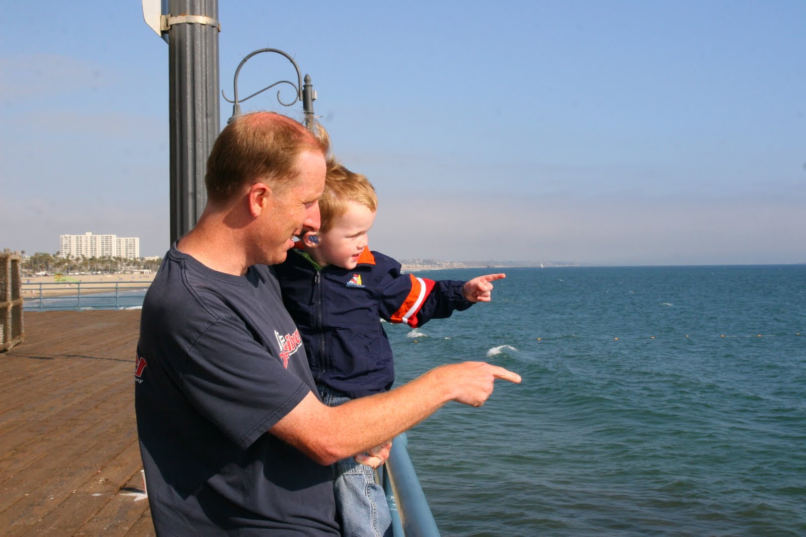 After school, we hopped into Lucas's parent's car and went to Santa Monica with them. Truthfully, this involved squeezing into the back seat of a very small rental car, between two carseats. This is where the donuts come into play- if I had eaten just one less, the fit would have been a bit easier. The entire drive down the 10 freeway was spent cursing that extra donut and the adjustment knob on the side of Nolan's carseat!